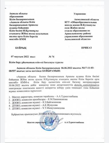 Коммунальное государственное учреждение «Общеобразовательная школа имени Иманжусупа Кутпанулы села Жибек жолы отдела образования по Аршалынскому району управления образования Акмолинской области»;